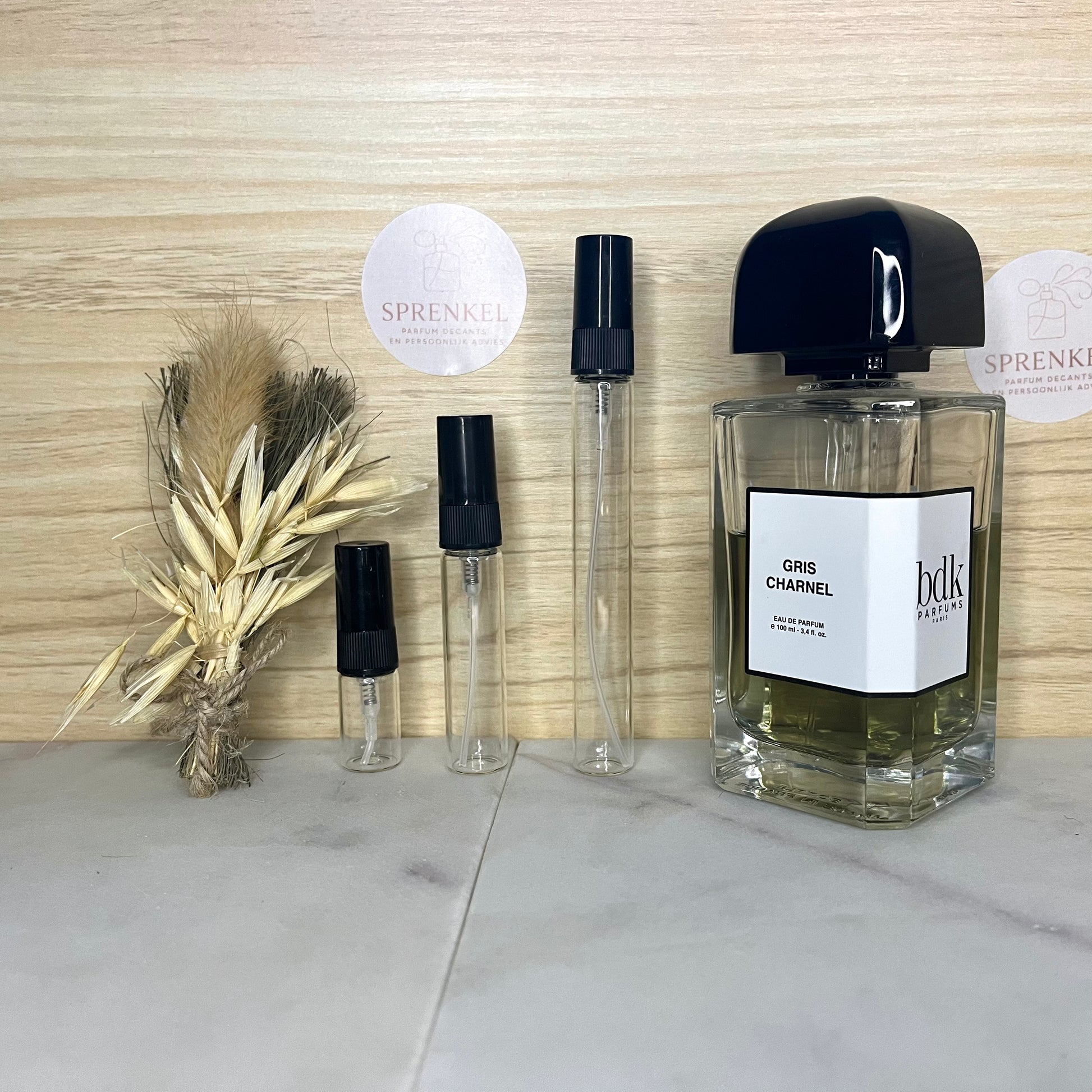 Wij bieden onze parfums uitsluitend aan in flesjes van 2 ml, 5 ml en 10 ml, allemaal voorzien van een handige verstuiver.