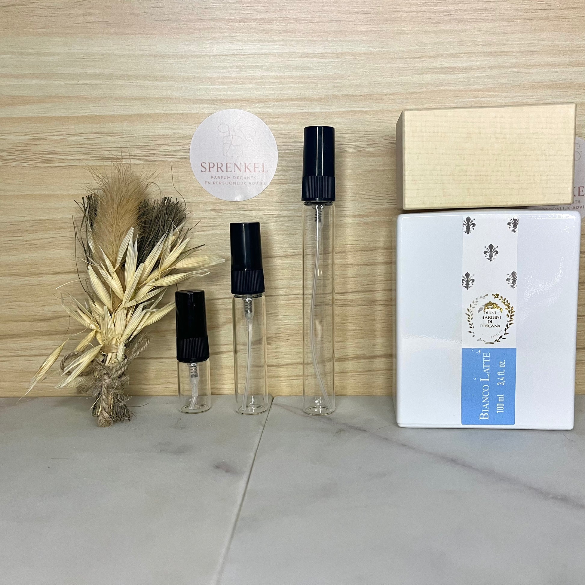 Wij bieden onze parfums uitsluitend aan in flesjes van 2 ml, 5 ml en 10 ml, allemaal voorzien van een handige verstuiver