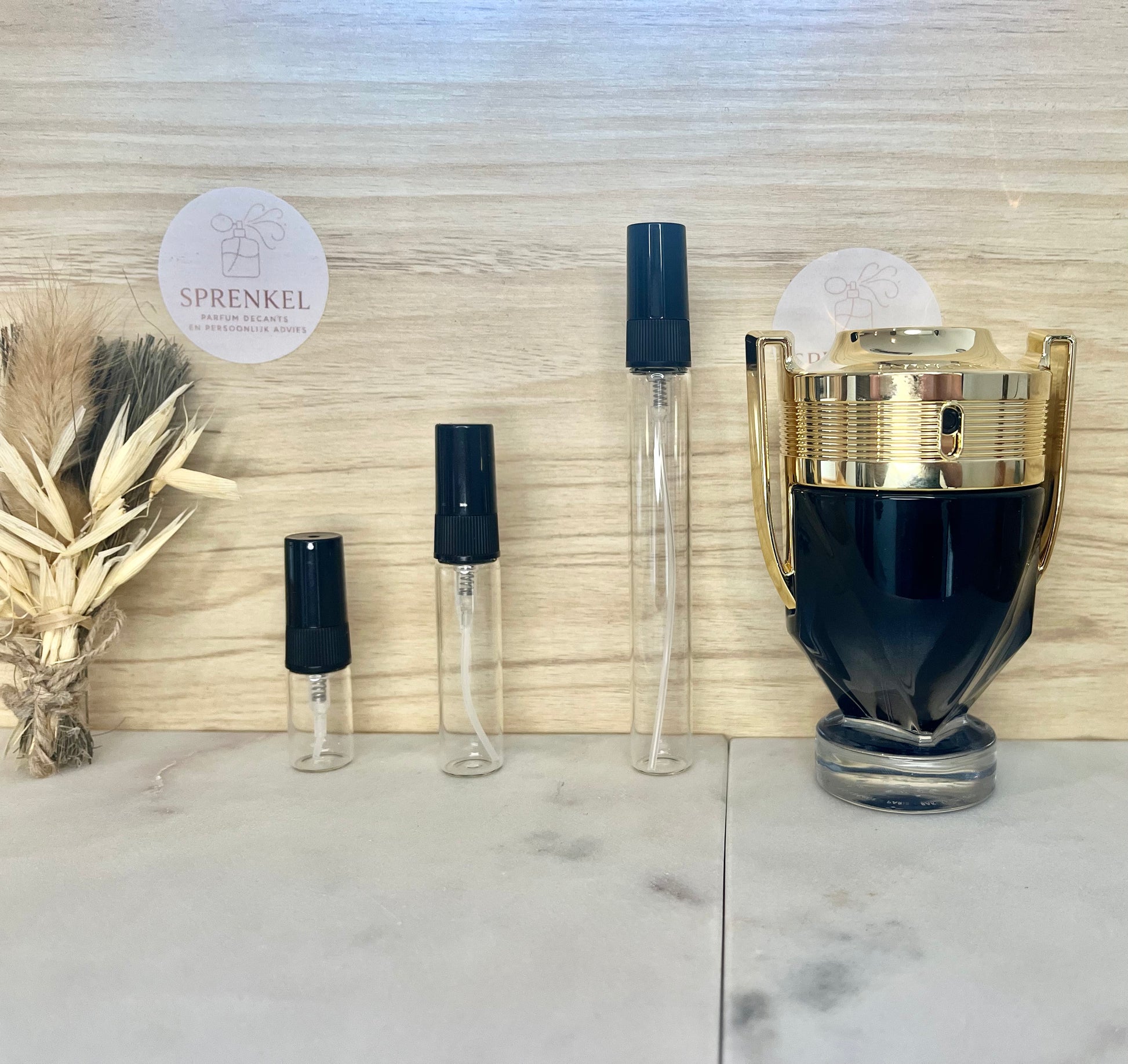 Wij bieden onze parfums uitsluitend aan in flesjes van 2 ml, 5 ml en 10 ml, allemaal voorzien van een handige verstuiver.